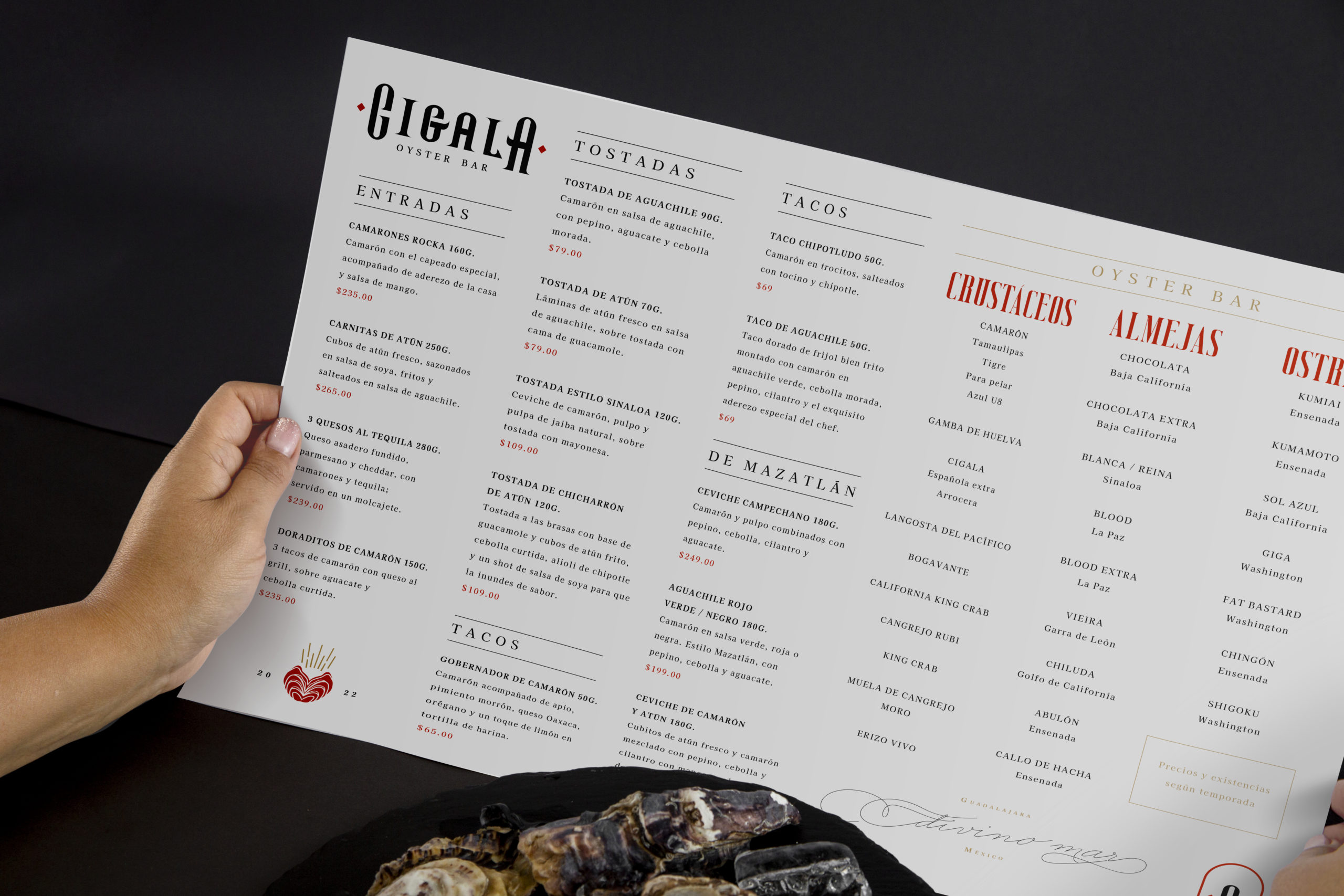 “Welcome to the sea paradise, where gods and humans finally agree, where the heart of good taste feeds the spirit. Cigala is the place to enjoy the emblematic seafood cuisine and oyster bar from the divine Mexican Pacific.”